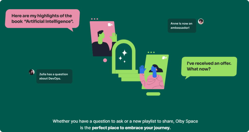 By participating in Olby Space, you’ll have the opportunity to both receive and provide support to grow and boost your career at the same time you see others growing.
