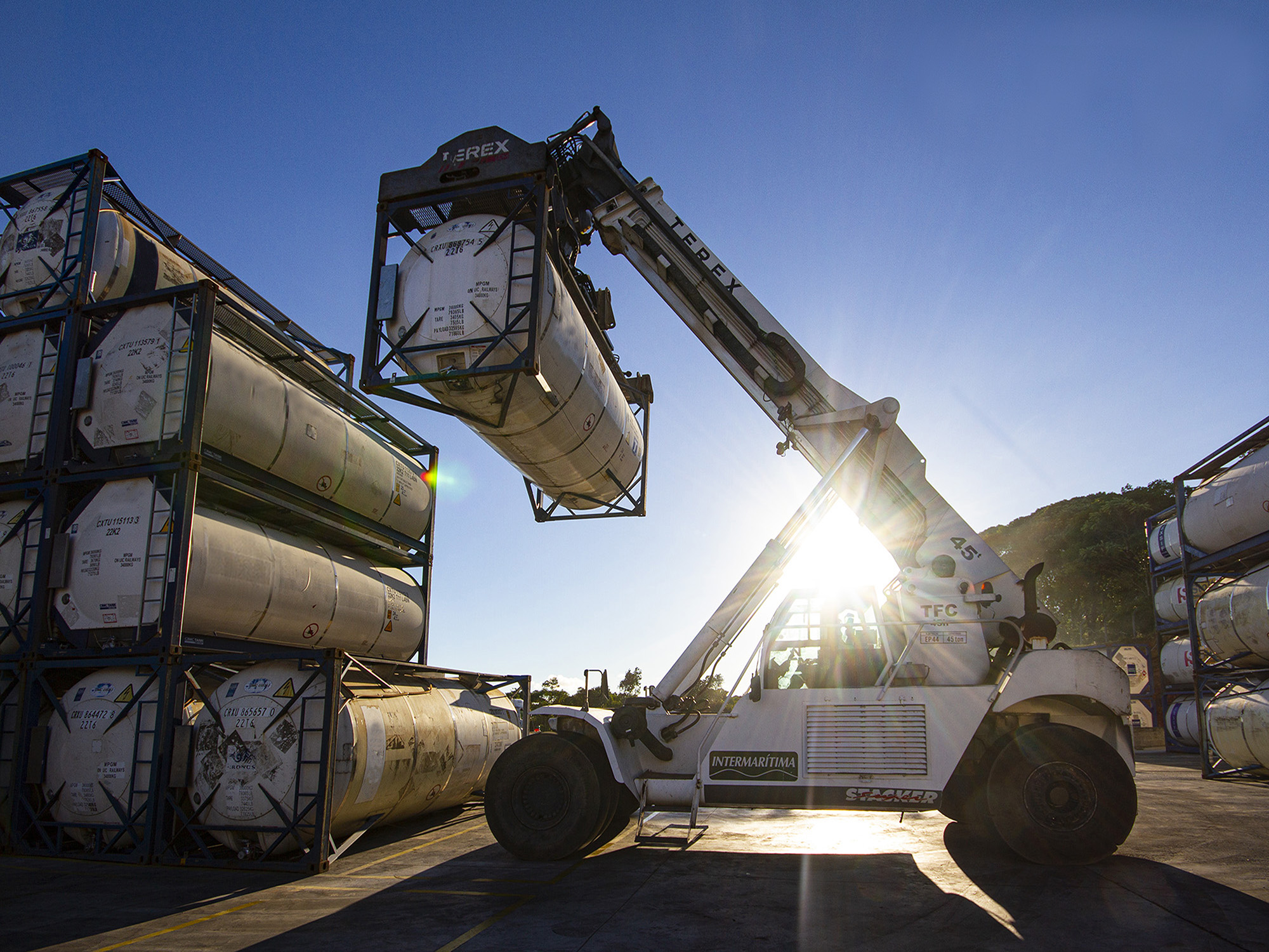 Operações de containers, carga geral, graneis, ferro, minério e cargas especiais nos portos.